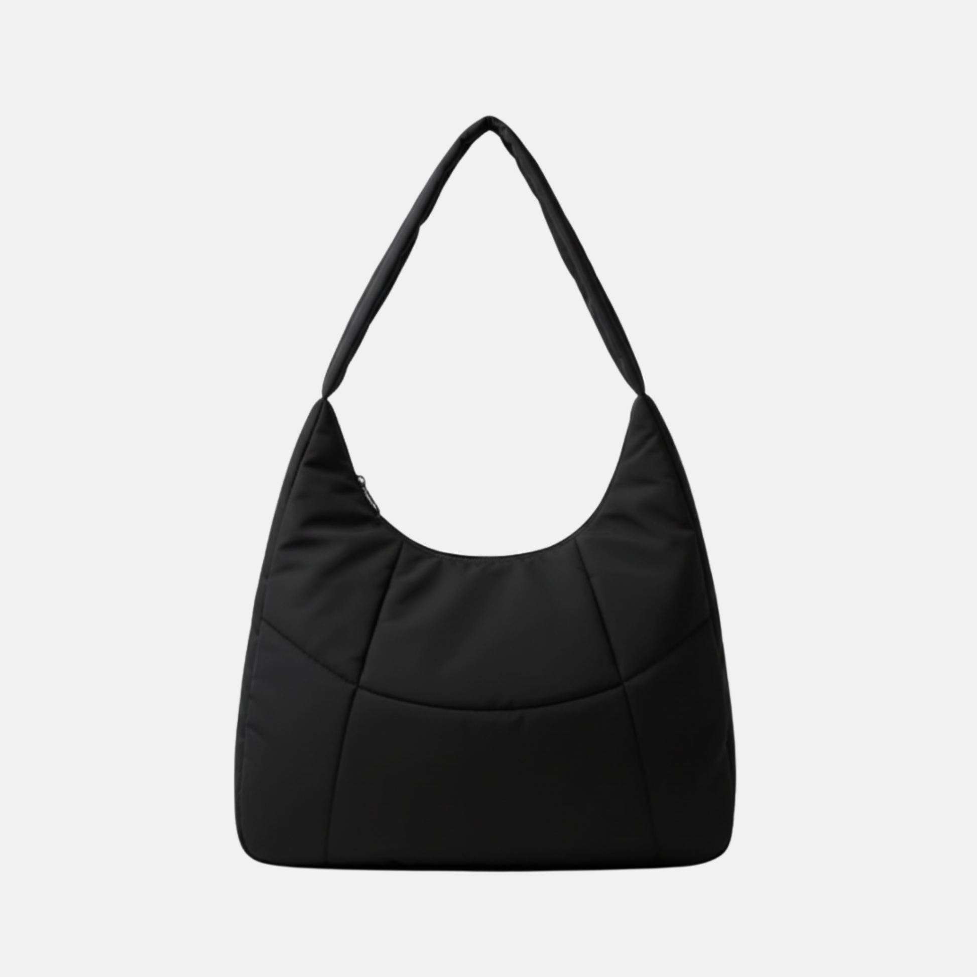 The bag's chic design is enhanced by its distinctive stitching lines, a fashionable element that adds a touch of bespoke charm. Inside, you'll discover a smooth polyester lining, a testament to its quality and attention to detail. Shaped like a delightful dumpling, this bag offers a uniquely soft and appealing silhouette.
